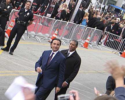 Andy Garcia makes his way down Hollywood Blvd along the bleacher section where he greets the fans and generously signs autographs.